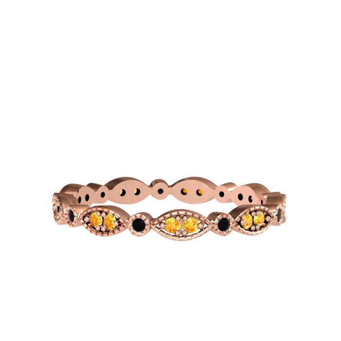 Sitrin ve siyah zirkon 8 ayar rose altın yüzük