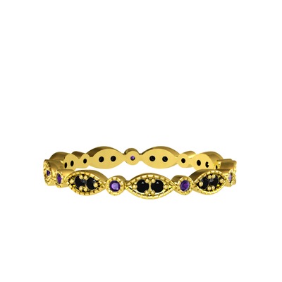 Siyah zirkon ve ametist 925 ayar altın kaplama gümüş yüzük