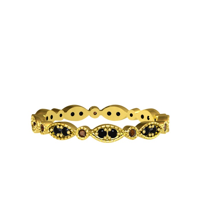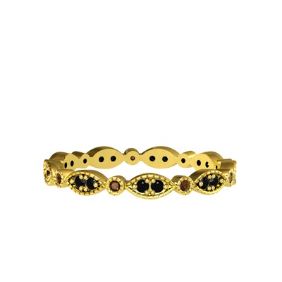Siyah zirkon ve dumanlı kuvars 925 ayar altın kaplama gümüş yüzük
