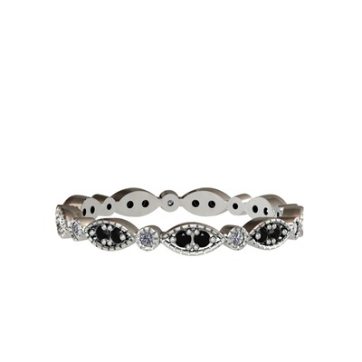 Siyah zirkon ve elmas 14 ayar beyaz altın yüzük (0.099 karat)