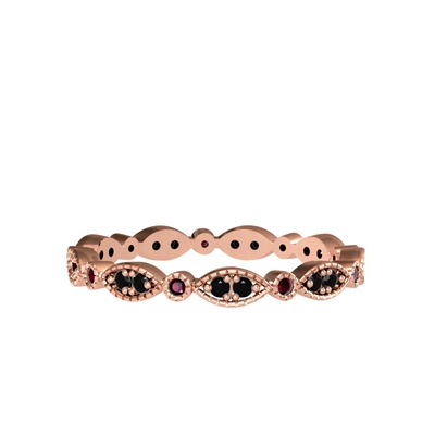 Siyah zirkon ve kök yakut 18 ayar rose altın yüzük