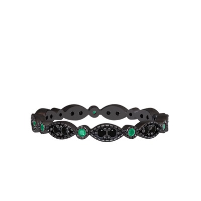 Siyah zirkon ve kök zümrüt 925 ayar siyah rodyum kaplama gümüş yüzük