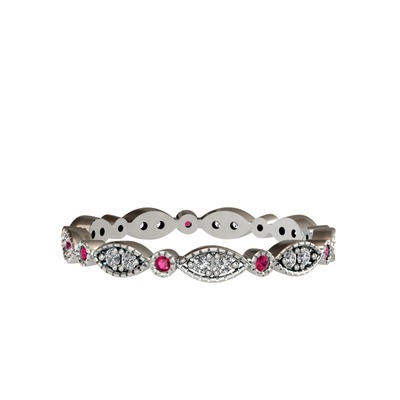 Swarovski ve rodolit garnet 14 ayar beyaz altın yüzük