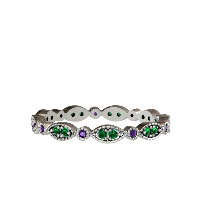 Yeşil kuvars ve ametist 925 ayar gümüş yüzük