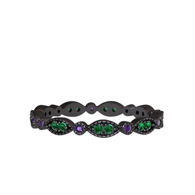 Yeşil kuvars ve ametist 925 ayar siyah rodyum kaplama gümüş yüzük