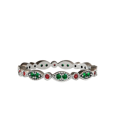 Yeşil kuvars ve garnet 8 ayar beyaz altın yüzük