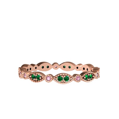 Yeşil kuvars ve pembe kuvars 18 ayar rose altın yüzük