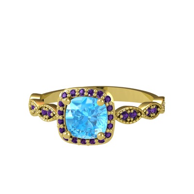 Akuamarin ve ametist 8 ayar altın yüzük