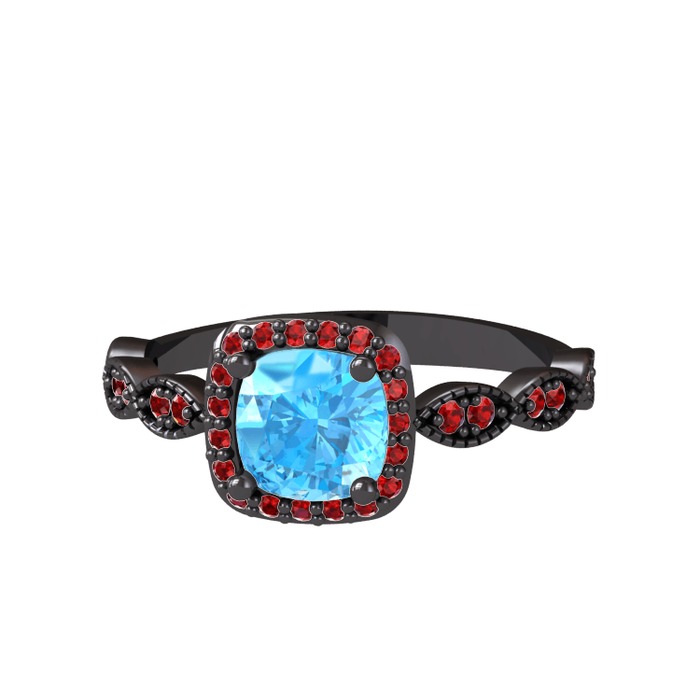 Akuamarin ve garnet 925 ayar siyah rodyum kaplama gümüş yüzük