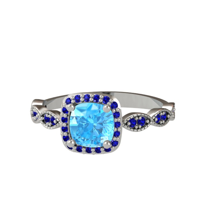 Akuamarin ve lab safir 14 ayar beyaz altın yüzük