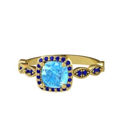 Akuamarin ve lab safir 925 ayar altın kaplama gümüş yüzük