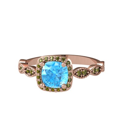 Akuamarin ve peridot 18 ayar rose altın yüzük