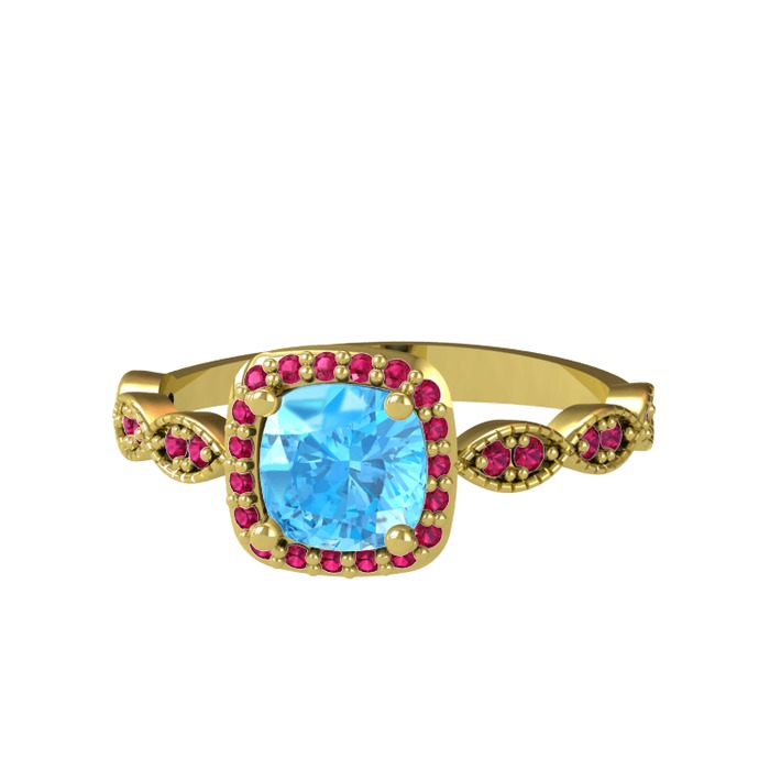 Akuamarin ve rodolit garnet 925 ayar altın kaplama gümüş yüzük