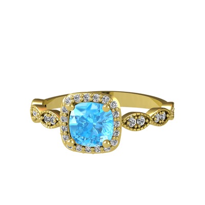Akuamarin ve swarovski 18 ayar altın yüzük