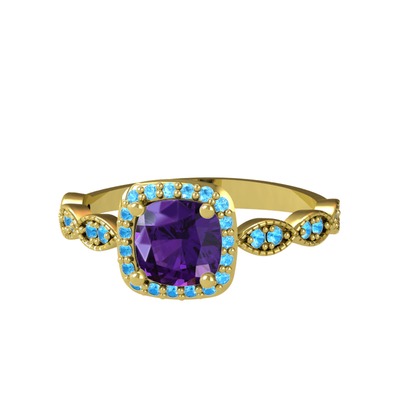 Ametist ve akuamarin 14 ayar altın yüzük