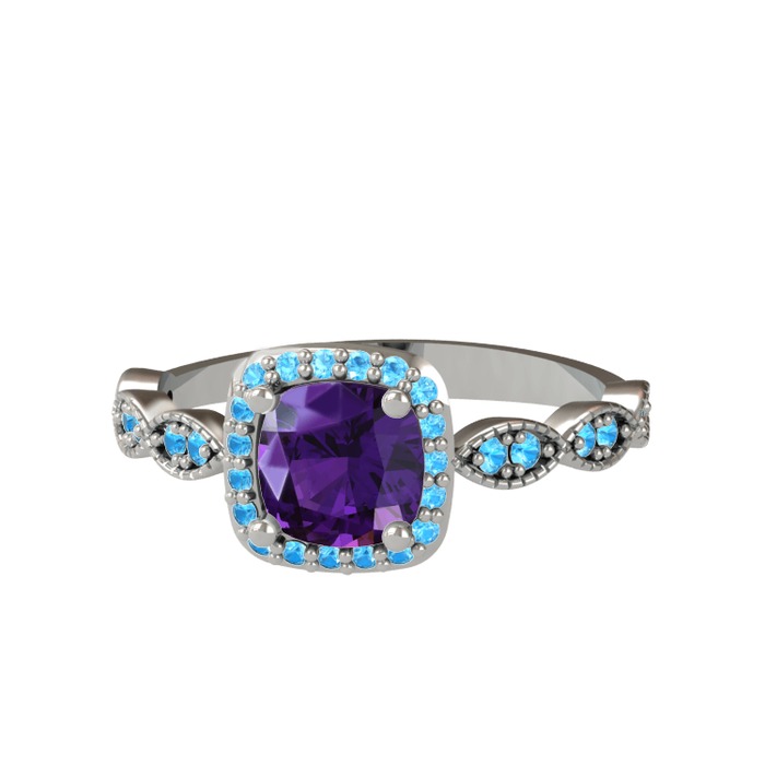 Ametist ve akuamarin 925 ayar gümüş yüzük
