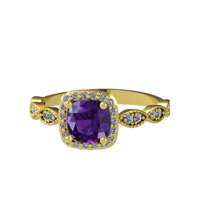 Ametist ve pırlanta 925 ayar altın kaplama gümüş yüzük (0.352 karat)