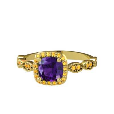 Ametist ve sitrin 14 ayar altın yüzük