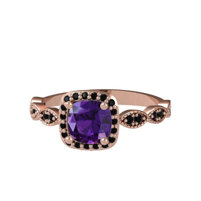 Ametist ve siyah zirkon 18 ayar rose altın yüzük
