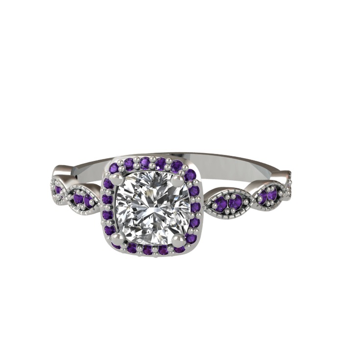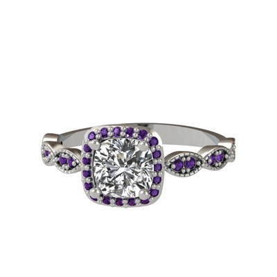 Beyaz zirkon ve ametist 925 ayar gümüş yüzük