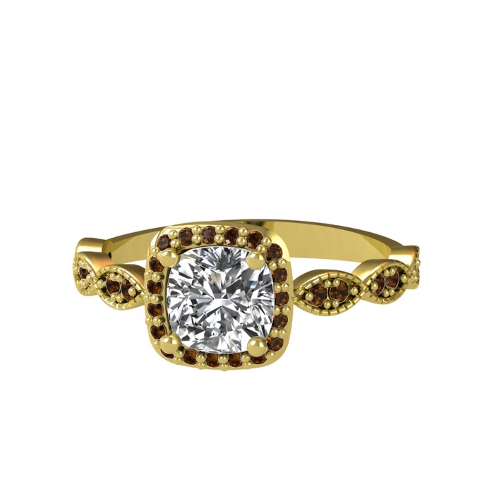 Beyaz zirkon ve dumanlı kuvars 14 ayar altın yüzük