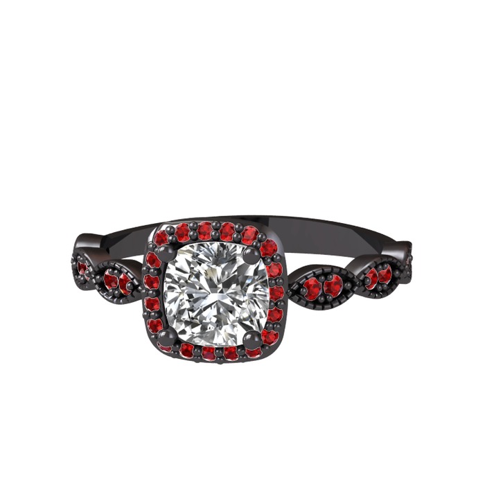Beyaz zirkon ve garnet 925 ayar siyah rodyum kaplama gümüş yüzük