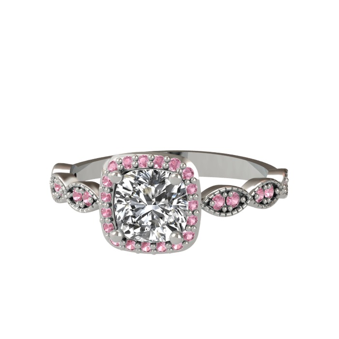 Beyaz zirkon ve pembe kuvars 18 ayar beyaz altın yüzük