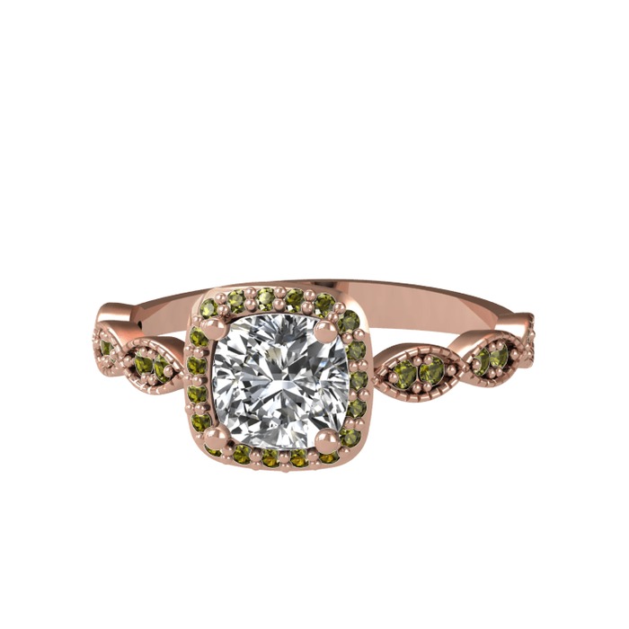 Beyaz zirkon ve peridot 18 ayar rose altın yüzük