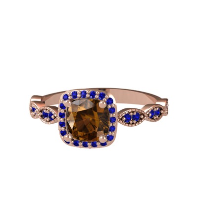 Dumanlı kuvars ve lab safir 8 ayar rose altın yüzük