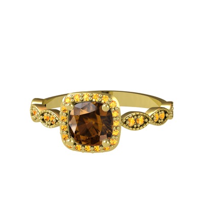 Dumanlı kuvars ve sitrin 14 ayar altın yüzük