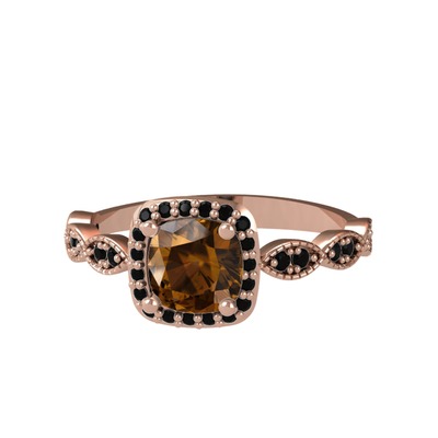 Dumanlı kuvars ve siyah zirkon 925 ayar rose altın kaplama gümüş yüzük