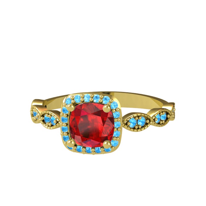 Garnet ve akuamarin 925 ayar altın kaplama gümüş yüzük