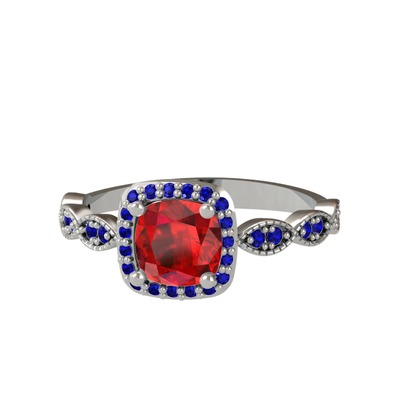 Garnet ve lab safir 14 ayar beyaz altın yüzük