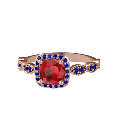 Garnet ve lab safir 8 ayar rose altın yüzük
