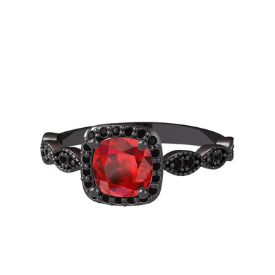 Garnet ve siyah zirkon 925 ayar siyah rodyum kaplama gümüş yüzük