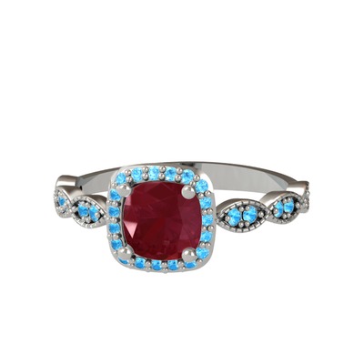 Kök yakut ve akuamarin 925 ayar gümüş yüzük