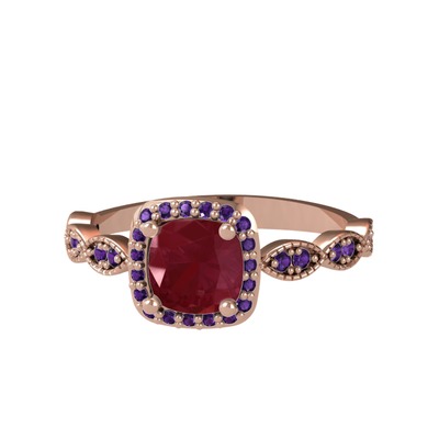 Kök yakut ve ametist 14 ayar rose altın yüzük