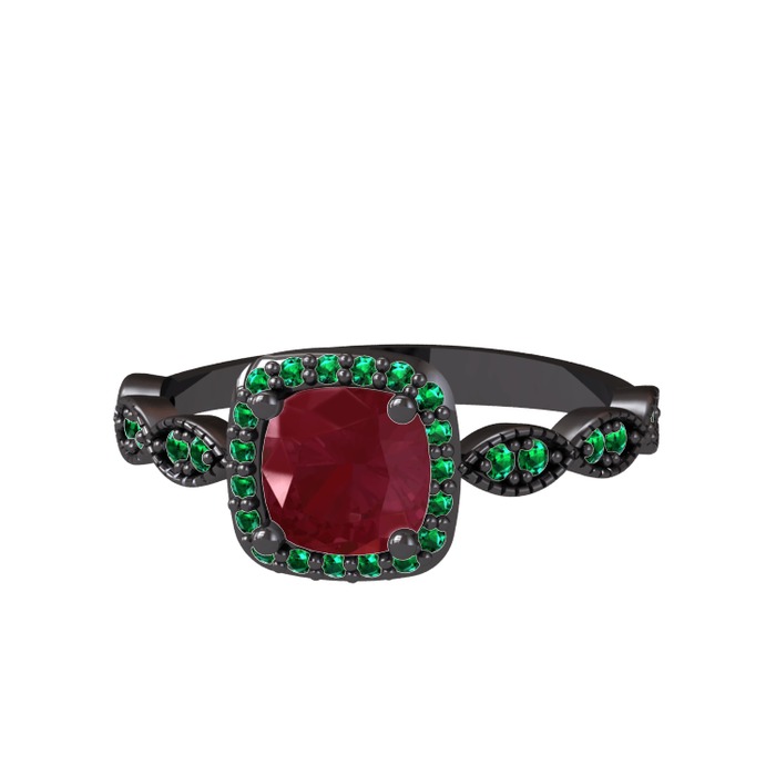 Kök yakut ve yeşil kuvars 925 ayar siyah rodyum kaplama gümüş yüzük