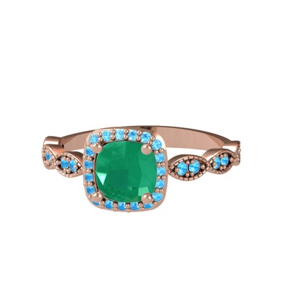 Kök zümrüt ve akuamarin 18 ayar rose altın yüzük