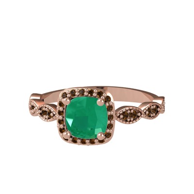 Kök zümrüt ve dumanlı kuvars 14 ayar rose altın yüzük