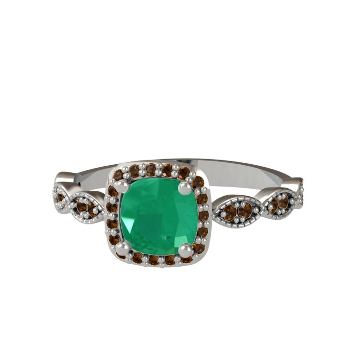 Kök zümrüt ve dumanlı kuvars 8 ayar beyaz altın yüzük
