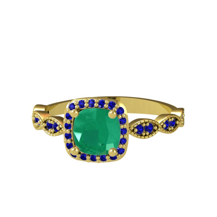 Kök zümrüt ve lab safir 18 ayar altın yüzük