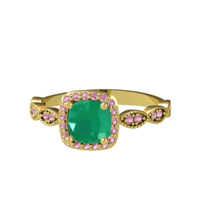 Kök zümrüt ve pembe kuvars 8 ayar altın yüzük