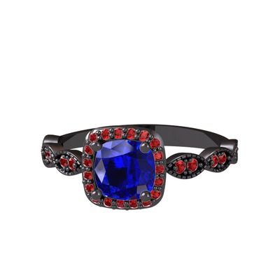 Lab safir ve garnet 925 ayar siyah rodyum kaplama gümüş yüzük