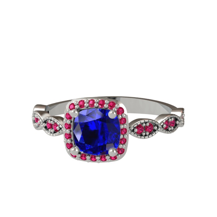 Lab safir ve rodolit garnet 18 ayar beyaz altın yüzük