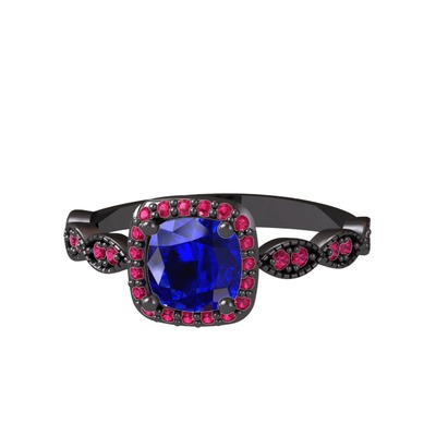 Lab safir ve rodolit garnet 925 ayar siyah rodyum kaplama gümüş yüzük