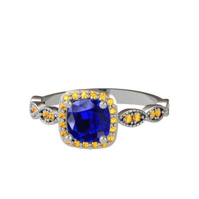 Lab safir ve sitrin 14 ayar beyaz altın yüzük