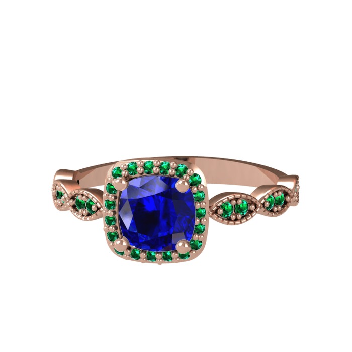 Lab safir ve yeşil kuvars 14 ayar rose altın yüzük