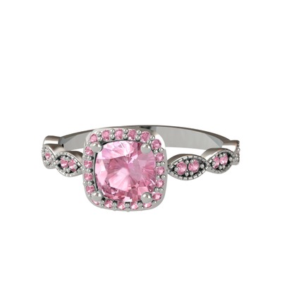 Pembe kuvars 18 ayar beyaz altın yüzük