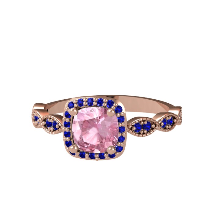 Pembe kuvars ve lab safir 925 ayar rose altın kaplama gümüş yüzük